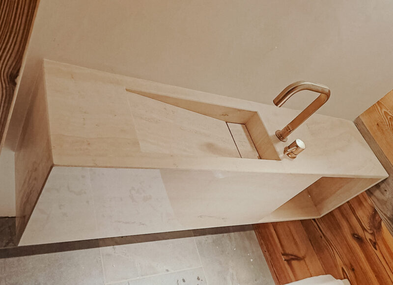 Lave-mains sur mesure en Travertin Alabastrino pour un chalet à Chamonix