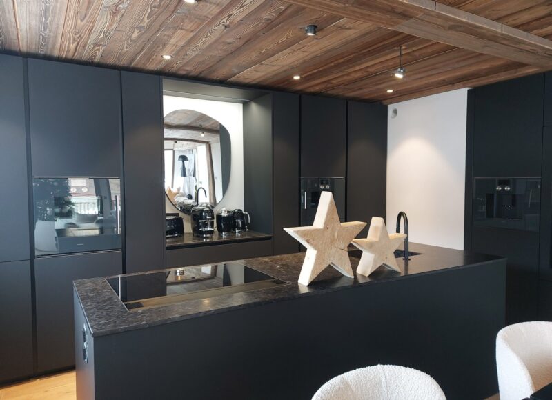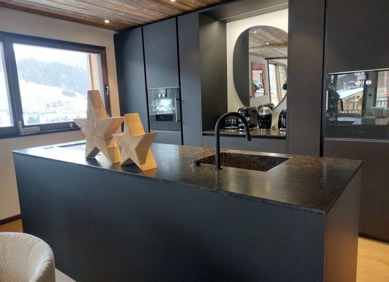 Savoir-faire & élégance brute au sommet…Dans un chalet d’exception à Megève, Alpes Léman Marbrerie signe une réalisation tout en équilibre entre authenticité et modernité. Conçue pour RBC Mobilier, cette cuisine sur mesure met en scène un granit Brown Antique à la finition cuir, choisi pour sa texture unique et son caractère minéral affirmé.