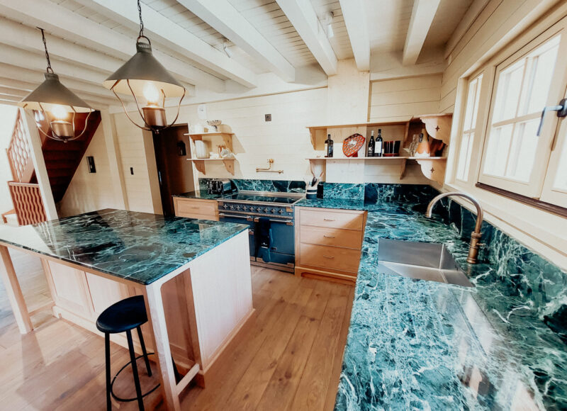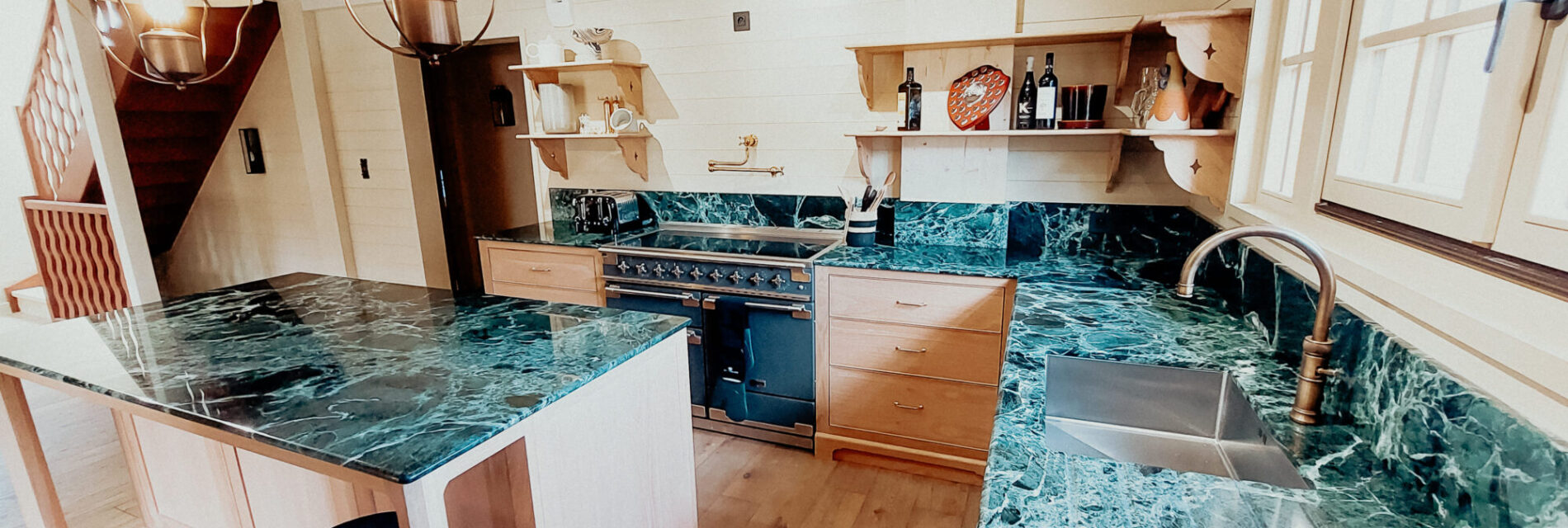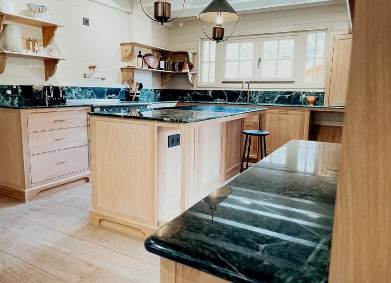 Cuisine sur mesure en marbre pour un chalet en Haute-Savoie