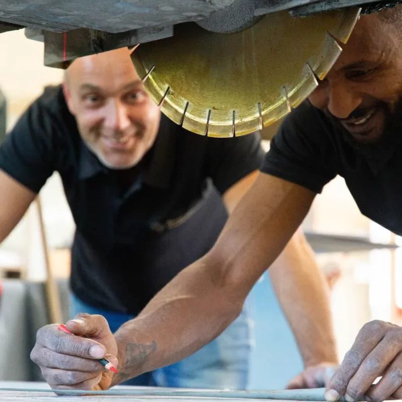 Associez votre projet à un artisan marbrier reconnu, à taille humaine, doté d’un atelier de fabrication interne et d’une équipe expérimentée.