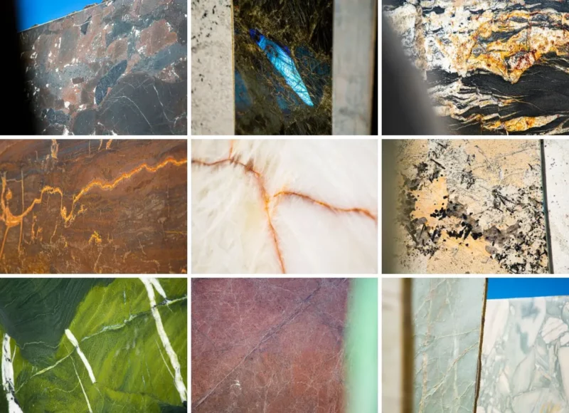 - plus de 60 matières exposées : marbres, granits, quartz, Dekton, céramiques…